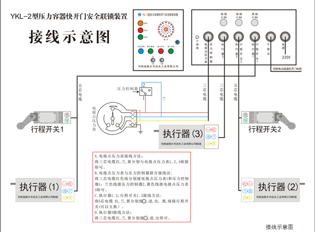 2.執(zhí)行器不防雨,220V供電設(shè)備在高溫潮濕環(huán)境中、露天下雨時(shí),如遮蓋不及時(shí),工作狀態(tài)可想而知······設(shè)備損壞、漏電、跳閘、觸電。對(duì)快開(kāi)門(mén)壓力容器正常運(yùn)行帶來(lái)很大的安全隱患。為此我公司技術(shù)人員投入近兩年時(shí)間,進(jìn)行全面徹底的技術(shù)創(chuàng)新,終于成功研發(fā)了YKL-2型壓力容器快開(kāi)門(mén)安全聯(lián)鎖裝置。